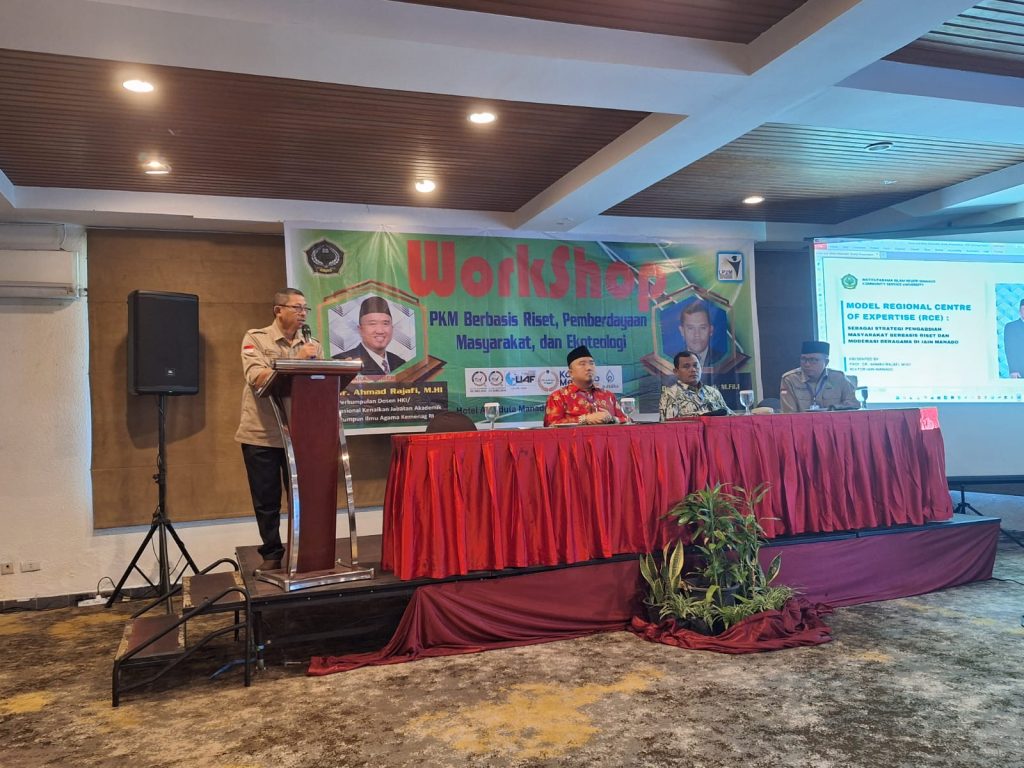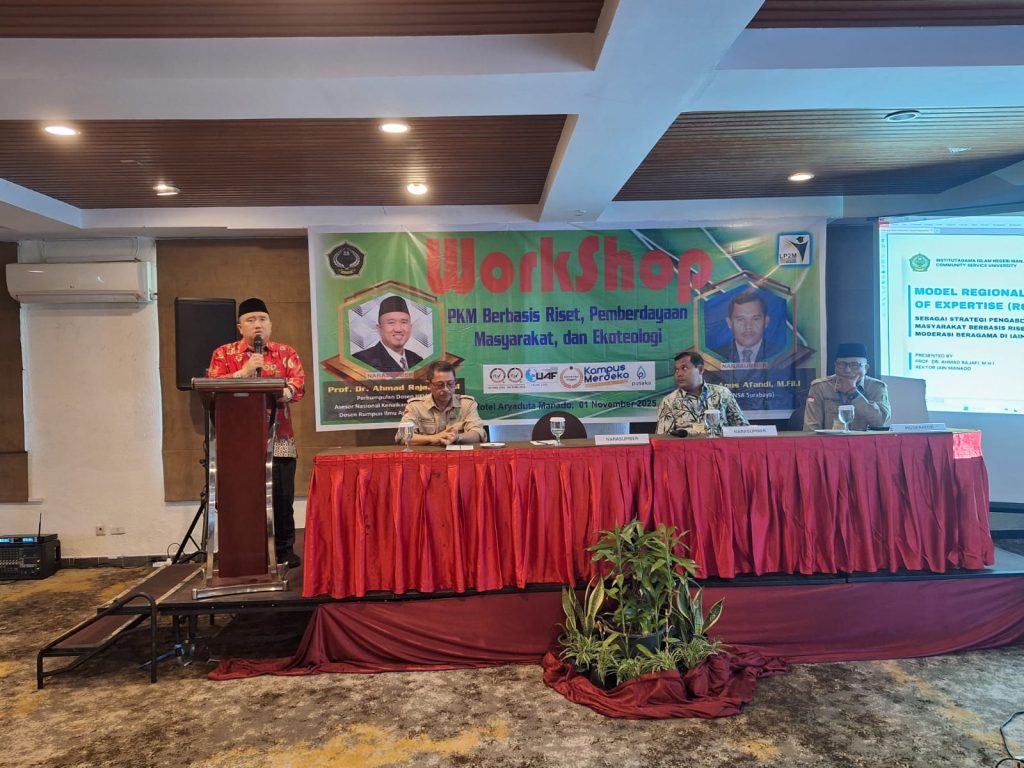 Manado, 1 November 2025 — Pusat Pengabdian kepada Masyarakat (PkM) di bawah Lembaga Penelitian dan Pengabdian kepada Masyarakat (LP2M) IAIN Manado menyelenggarakan Workshop Pengabdian Berbasis Riset dan Ekoteologi pada Sabtu (1/11/2025) di Hotel Aryaduta Manado. Kegiatan ini bertujuan memperkuat kapasitas dosen dan peneliti dalam mengembangkan model pengabdian yang berbasis riset, kolaboratif, dan berkelanjutan.
